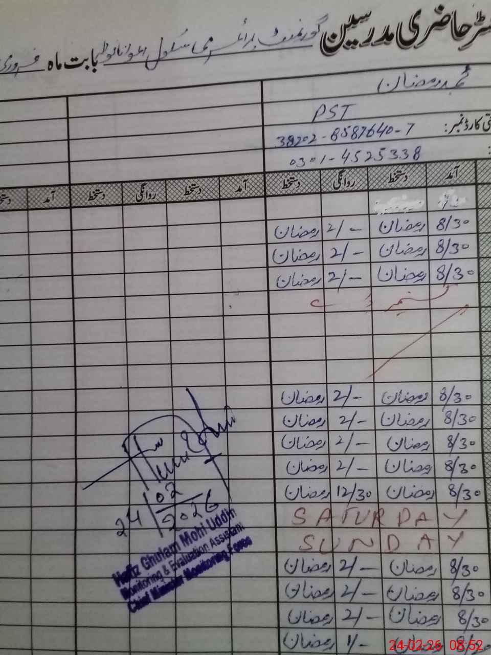 | Name: AL**** HU**** Designation: (School Headmaster's/Headmistress's) ESE (sci) Phone/Cell Number: 03**** |