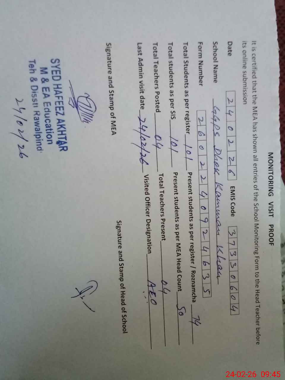 | EMIS Code: 37330604 | Name of School: GGPS DHOK KAMMAN KHAN | |||