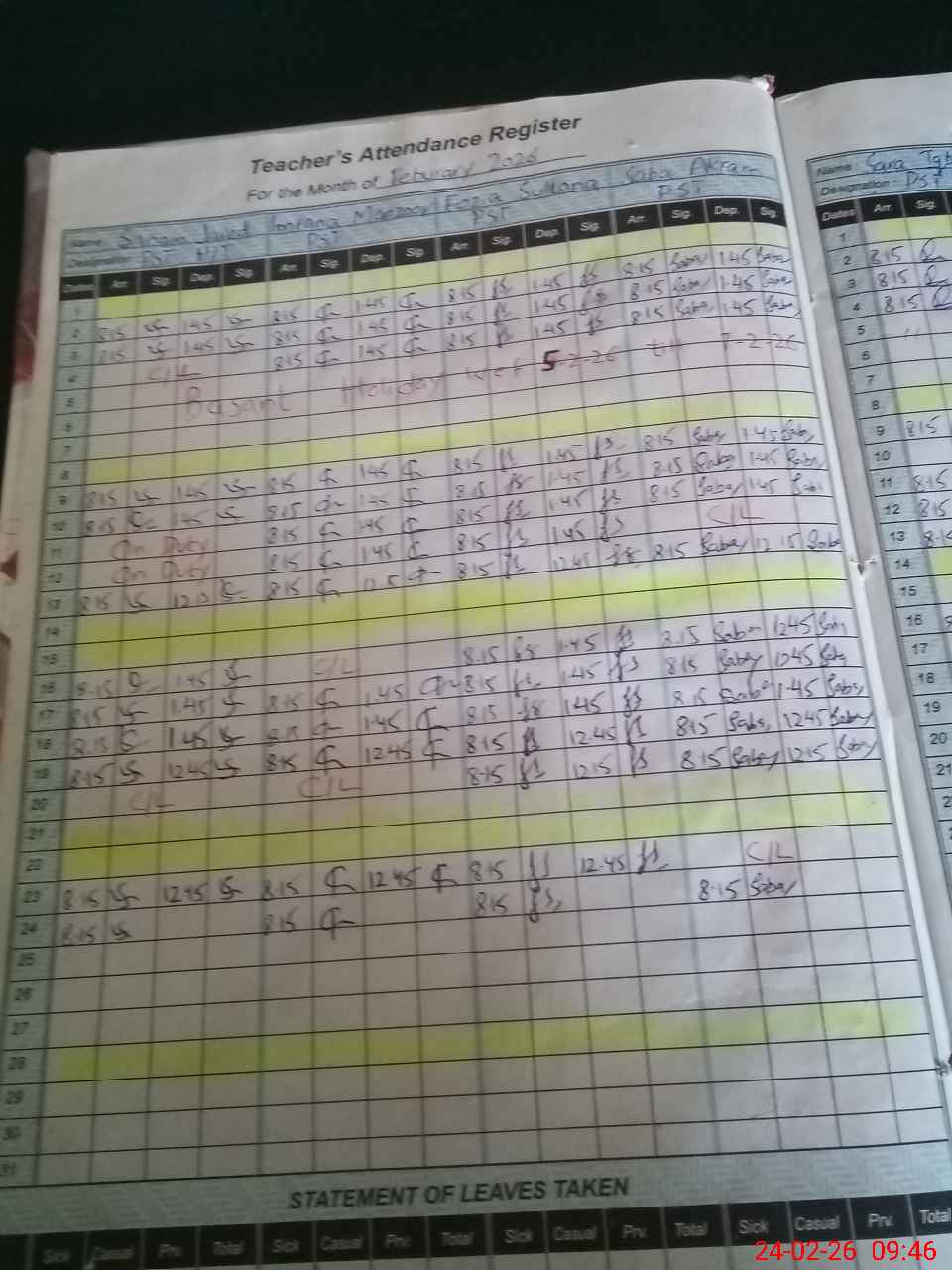 | Leave | Duty | Absent | Maternity | Medical | Ex- Pak |