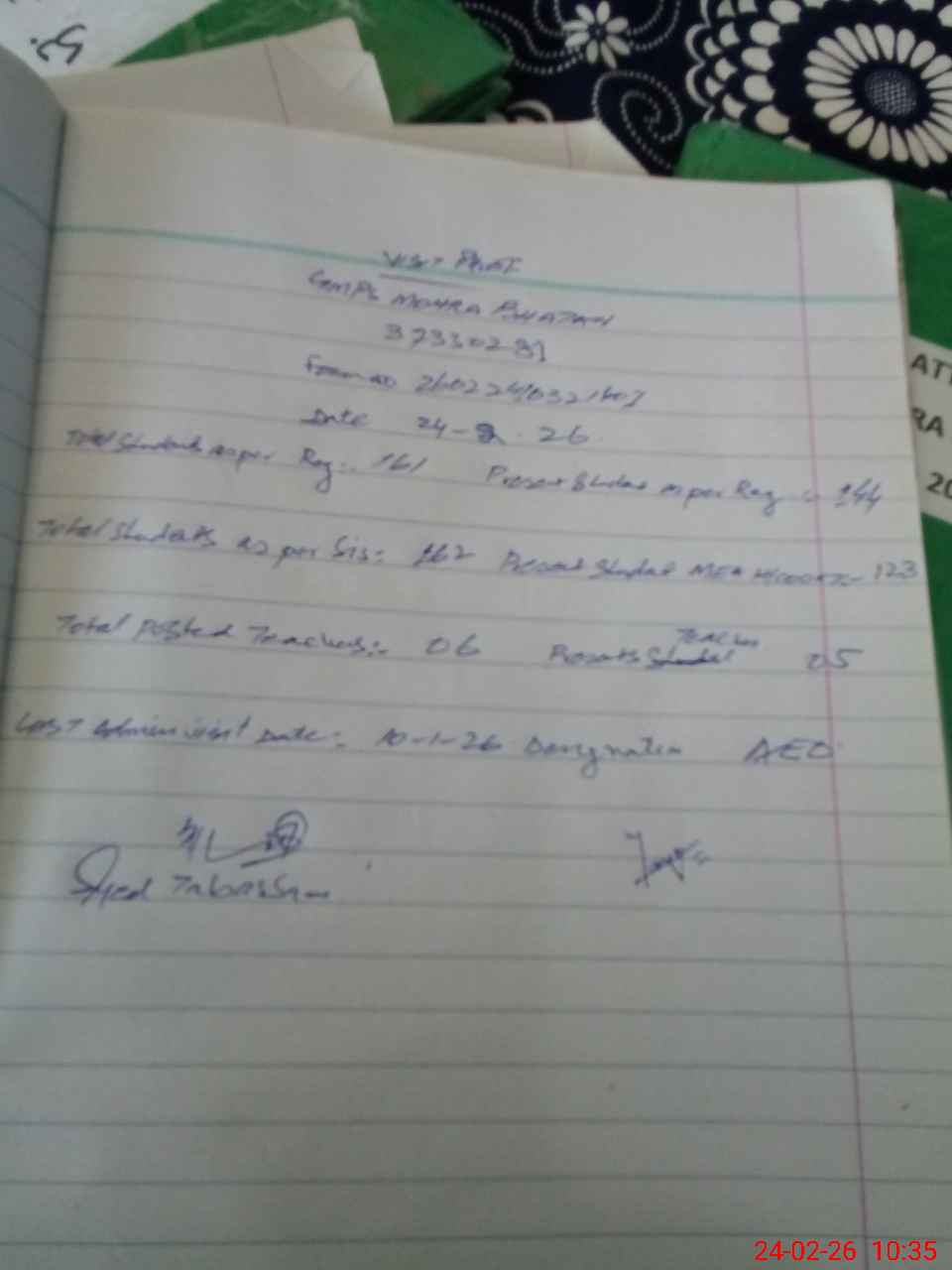 | Certified that this School was Inspected by the Undersigned MEA/DMO Today and the Information Stated Above is as Per Record. | |||||