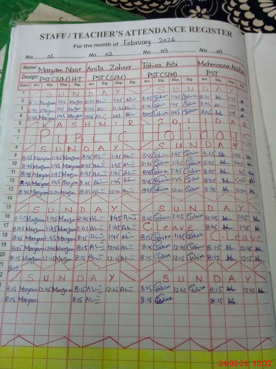 | 33**** | Na**** Kh**** | PST Science/Maths | Regular | 0 | 0 | 0 | 0 | 0 | 0 | 0 | 0 | 0 | Maternity |