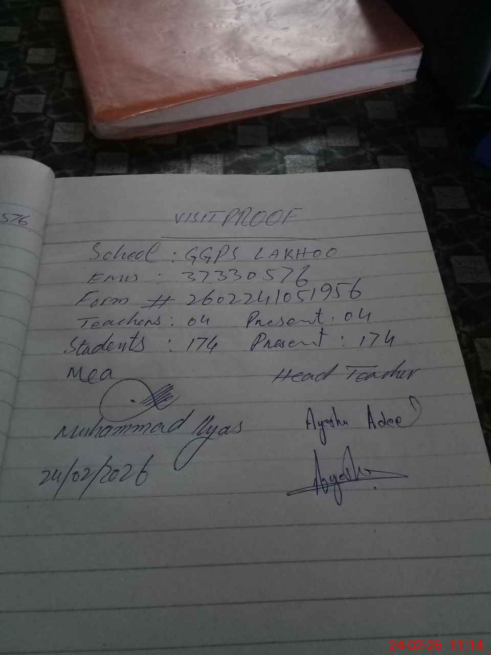 | EMIS Code: 37330576 | Name of School: GGPS LAKHOO | |||