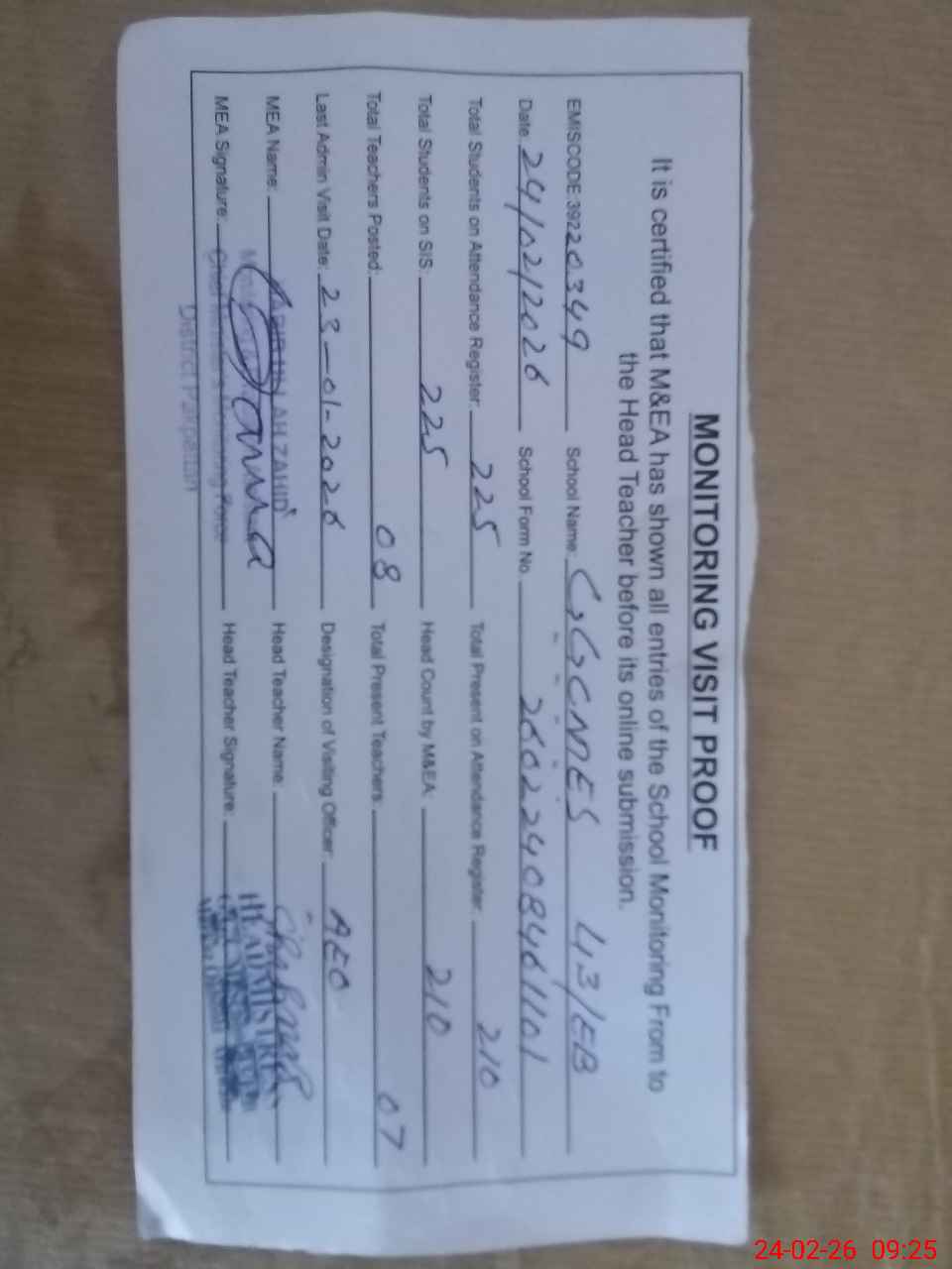 | EMIS Code: 39220349 | Name of School: GGCMES 43 EB P/O KOT KHUDA BUKHSH | |||