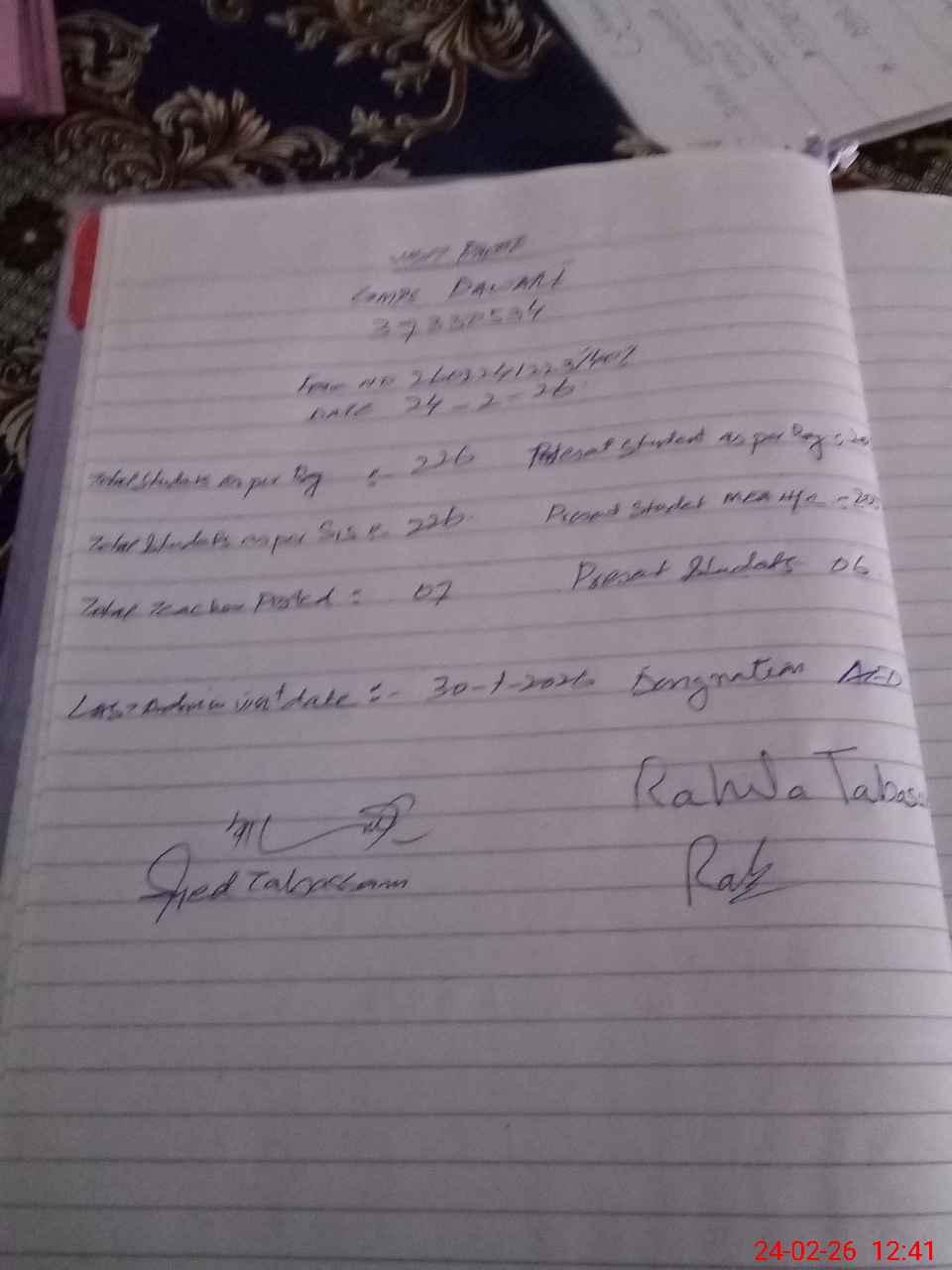 | Certified that this School was Inspected by the Undersigned MEA/DMO Today and the Information Stated Above is as Per Record. | |||||