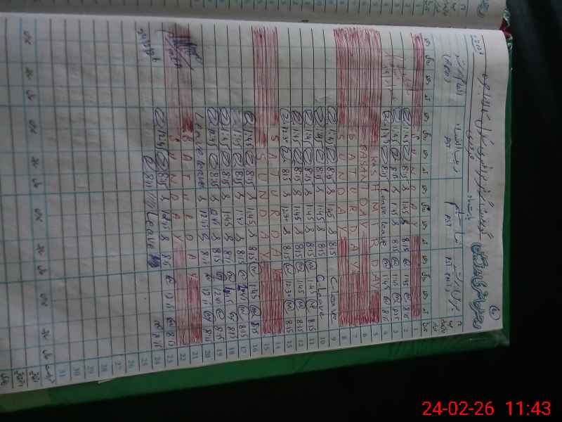 | CNIC | Full Name | Designation | R/C | Absence During Last Calender Month |