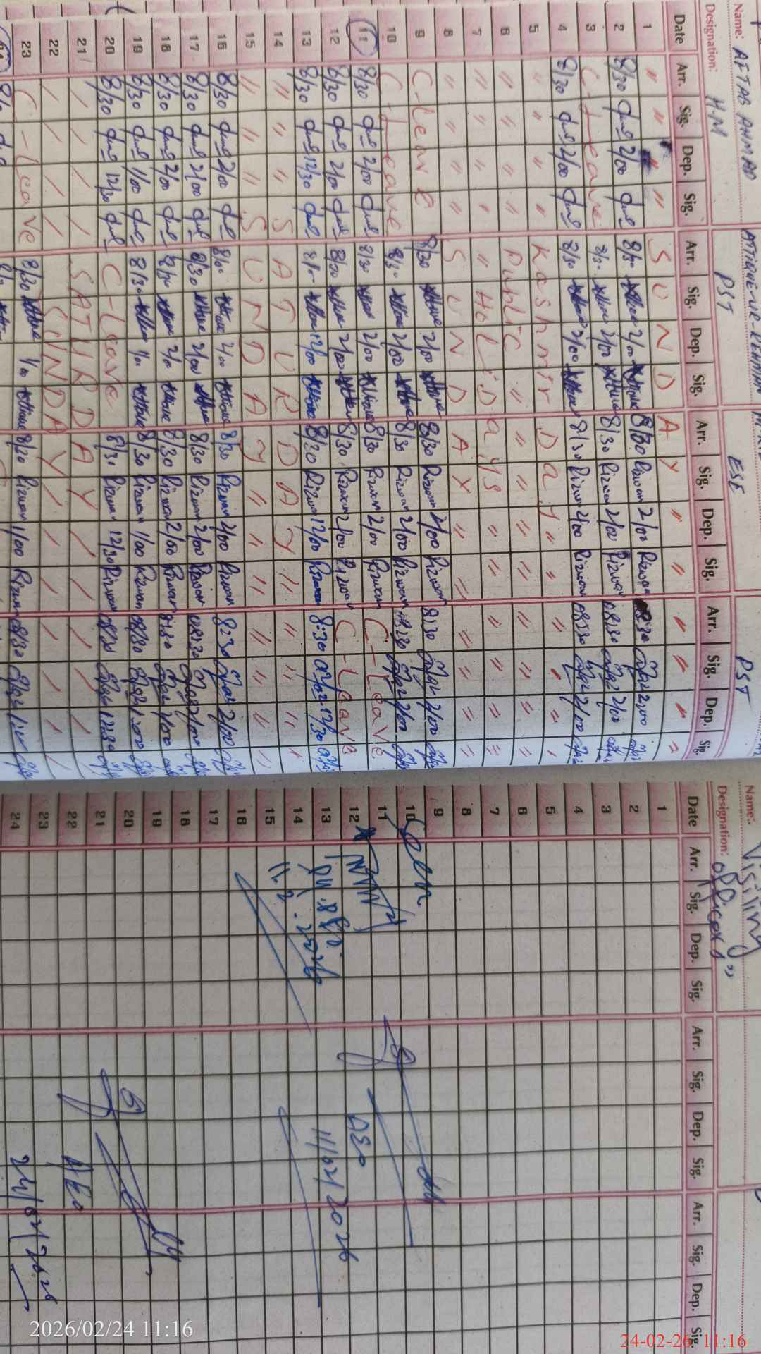 | Sr.No. | Visit Date | Designation | ||