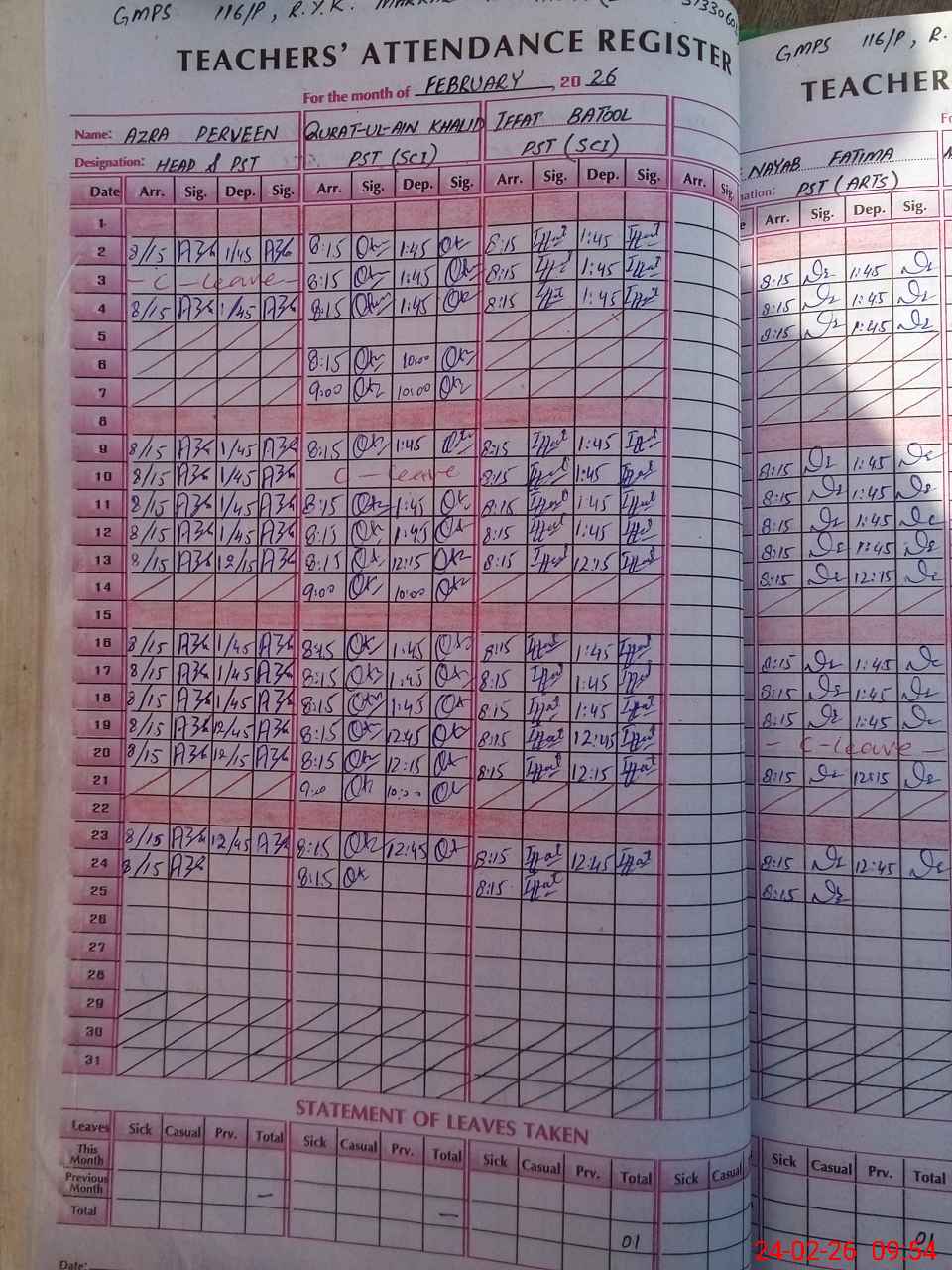 | Leave | Duty | Absent | Maternity | Medical | Ex- Pak |