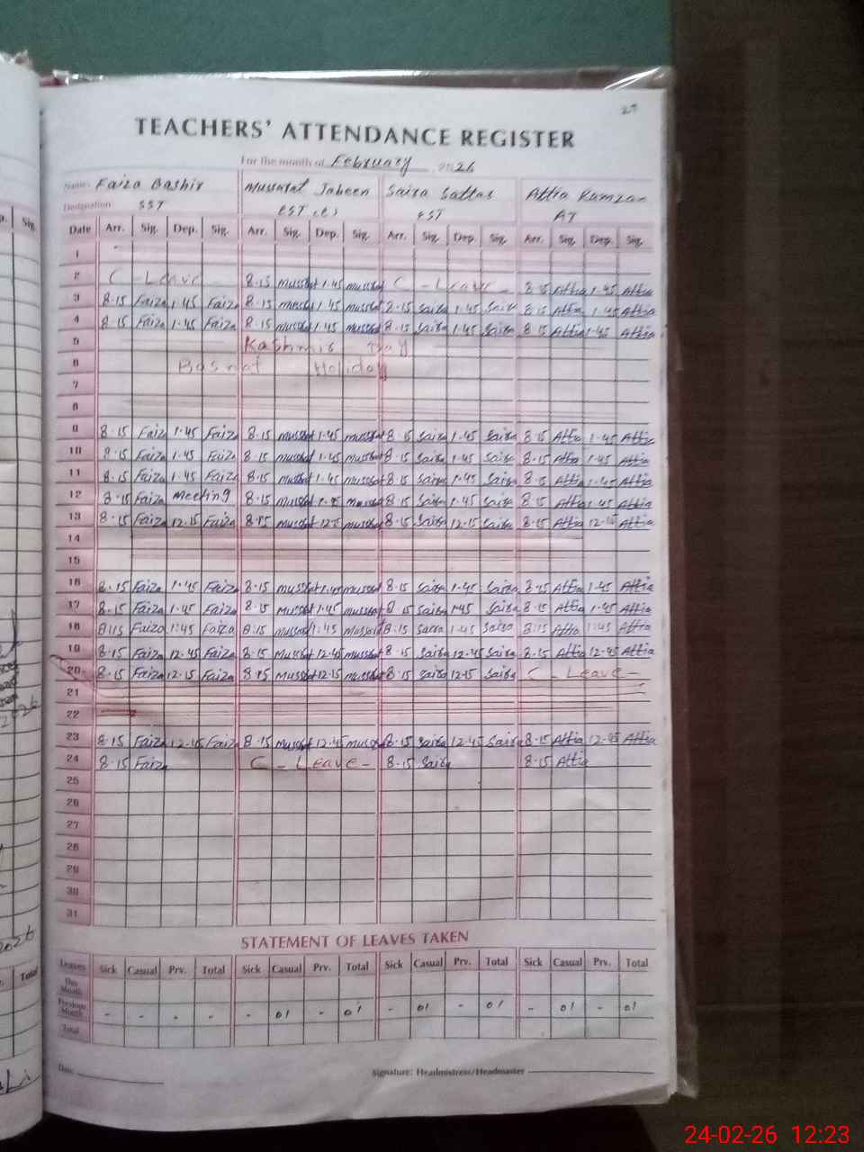 | Leave | Duty | Absent | Maternity | Medical | Ex- Pak |