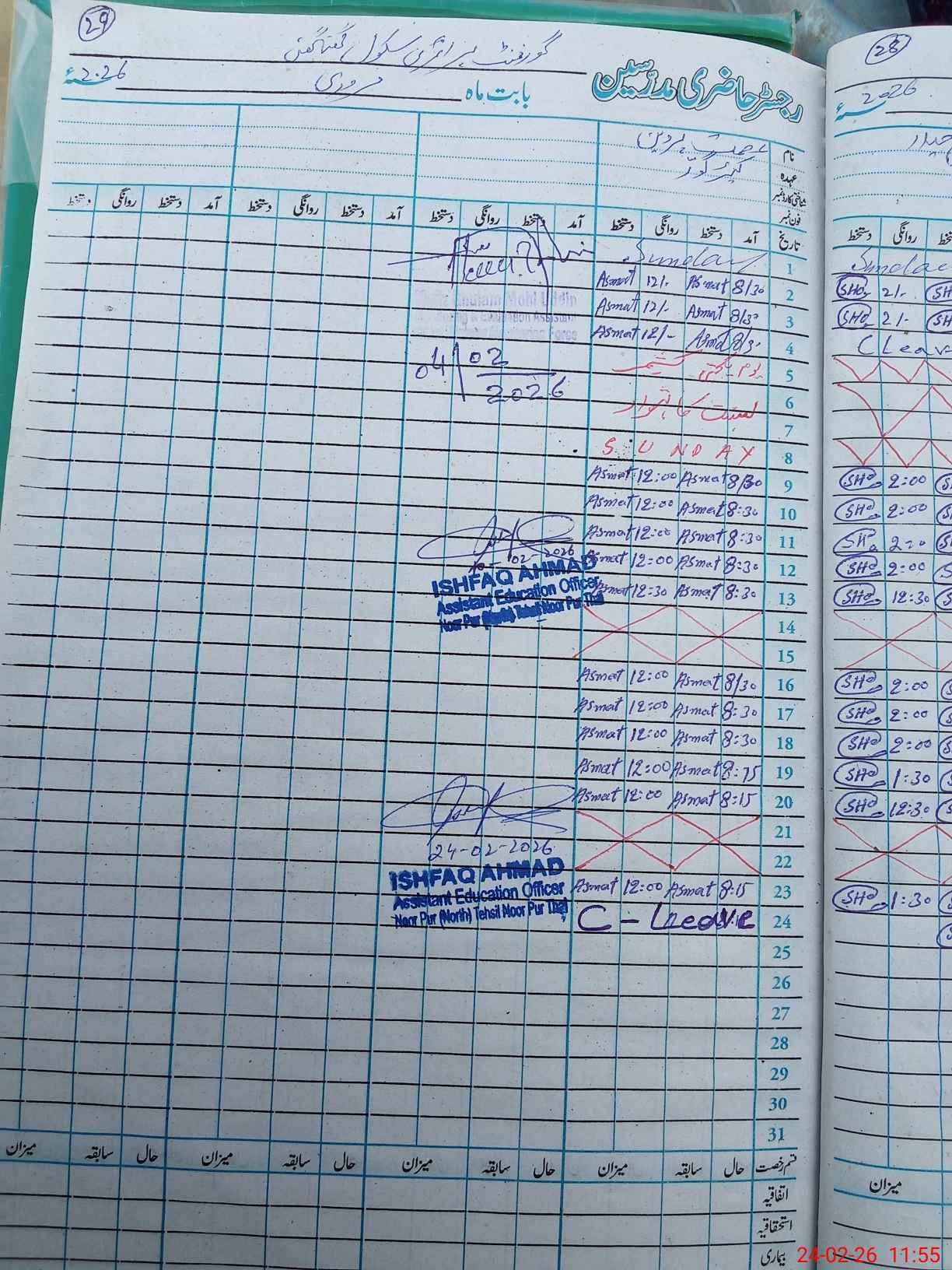 | CNIC | Full Name | Designation | R/C | Absence During Last Calender Month |