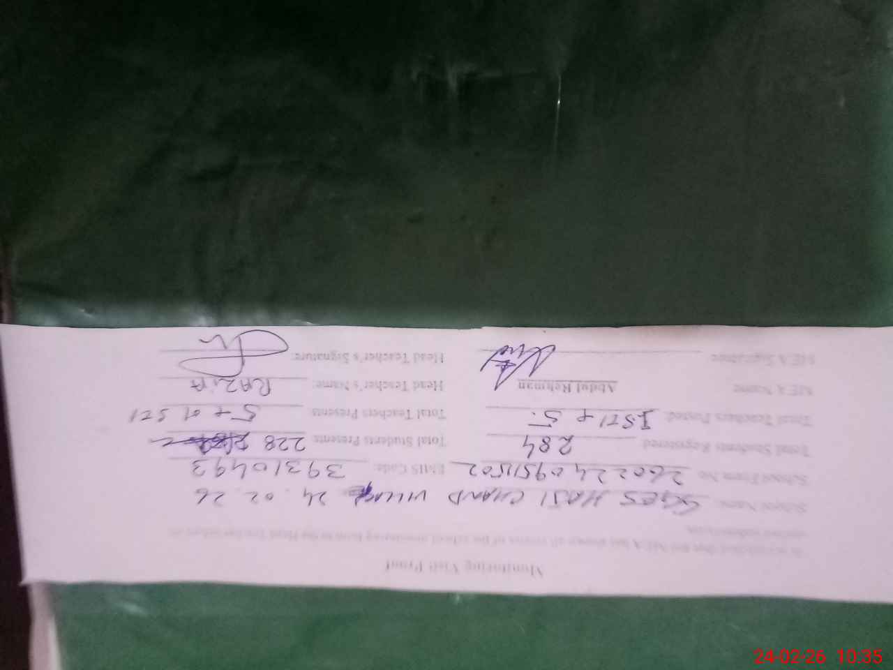| Attendance Register | Head Teacher | MEA with School | Visit Proof |