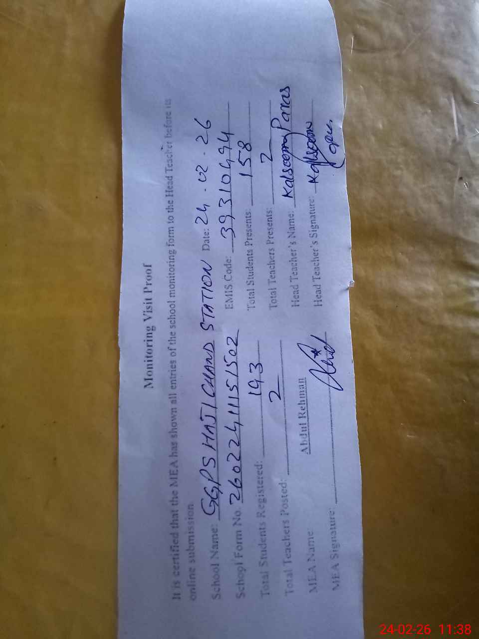 | EMIS Code: 39310494 | Name of School: GGPS HAJI CHAND STATION | |||