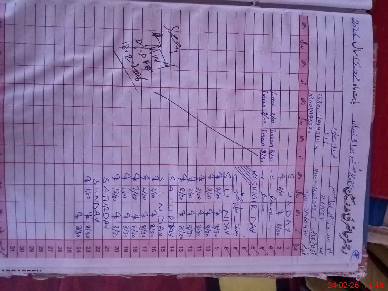 | Name: HA**** MYA**** Designation: (School Headmaster's/Headmistress's) PST Phone/Cell Number: 03**** |