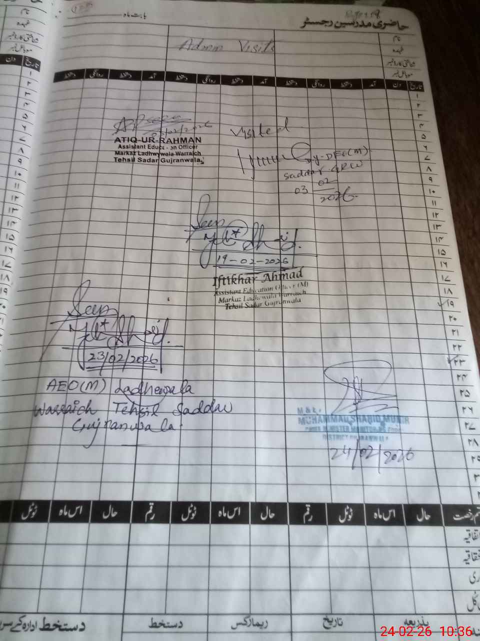 | Attendance Register | Head Teacher | MEA with School | Visit Proof |