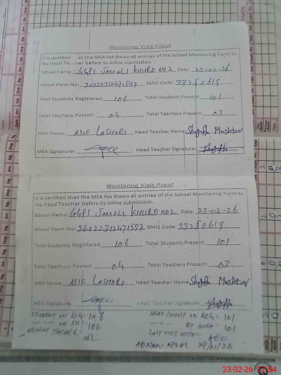 | EMIS Code: 33250619 | Name of School: GGPS JAMALI KHURD NO. 2 | |||