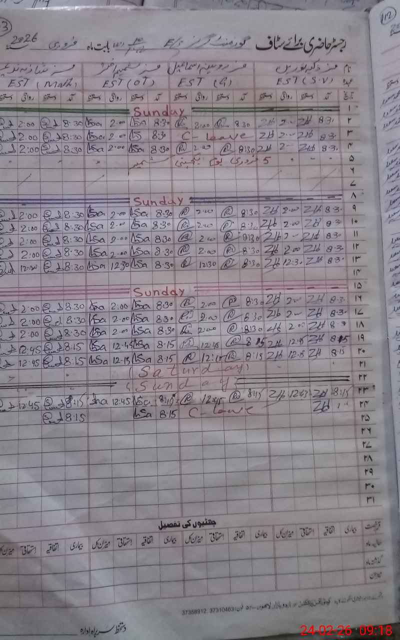 | CNIC | Full Name | Designation | R/C | Absence During Last Calender Month |
