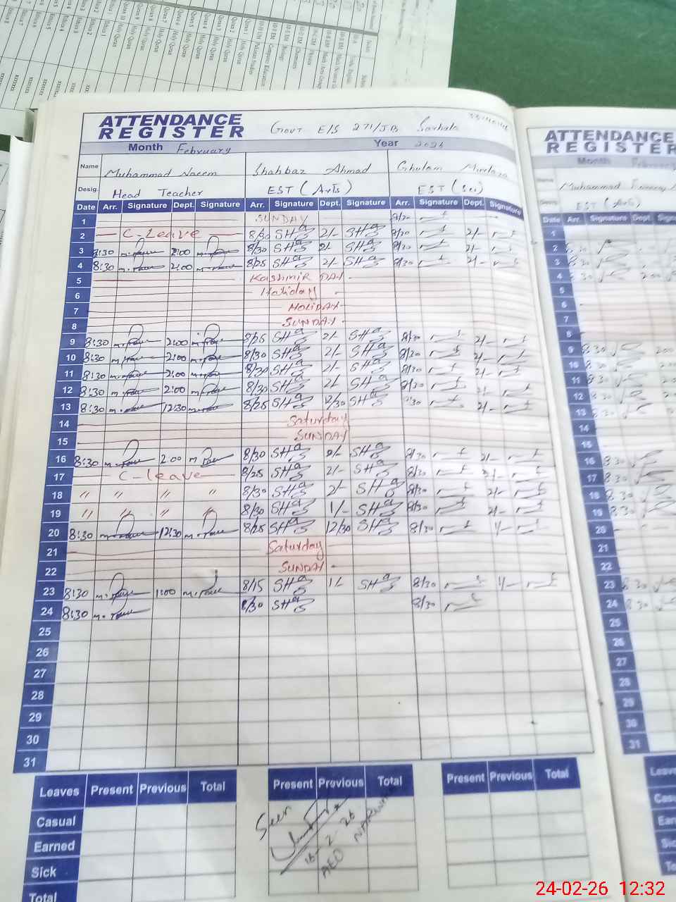 | CNIC | Full Name | Designation | R/C | Absence During Last Calender Month |