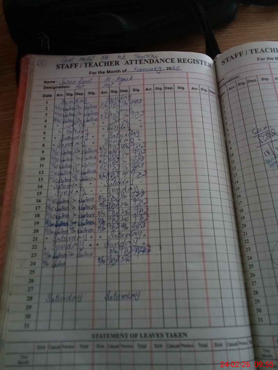 | Leave | Duty | Absent | Maternity | Medical | Ex- Pak |