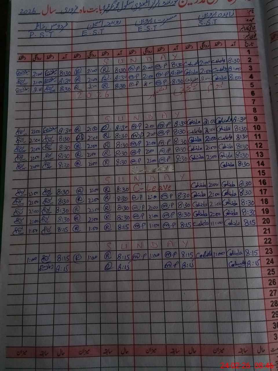 | CNIC | Full Name | Designation | R/C | Absence During Last Calender Month |