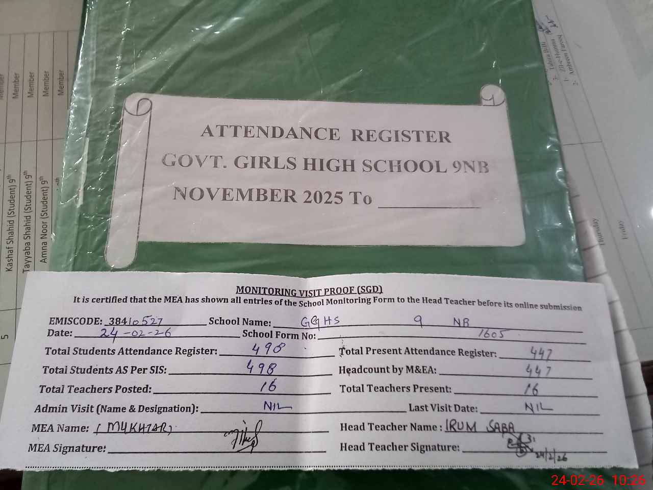 | EMIS Code: 38410527 | Name of School: GGHS CHAK NO.9 NB | |||