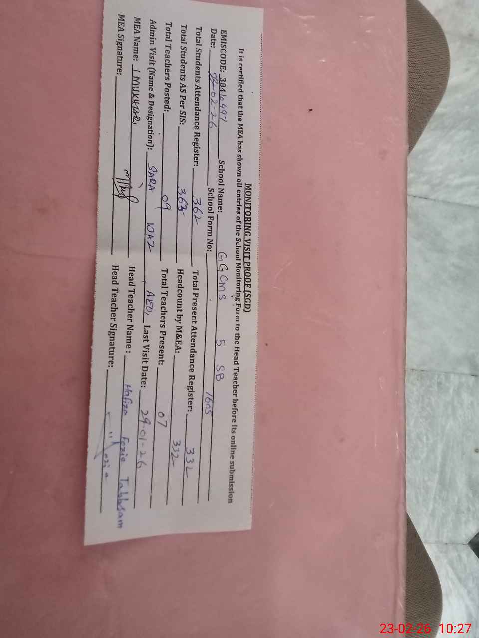| EMIS Code: 38410497 | Name of School: GGCMS CHAK NO.5 SB | |||
