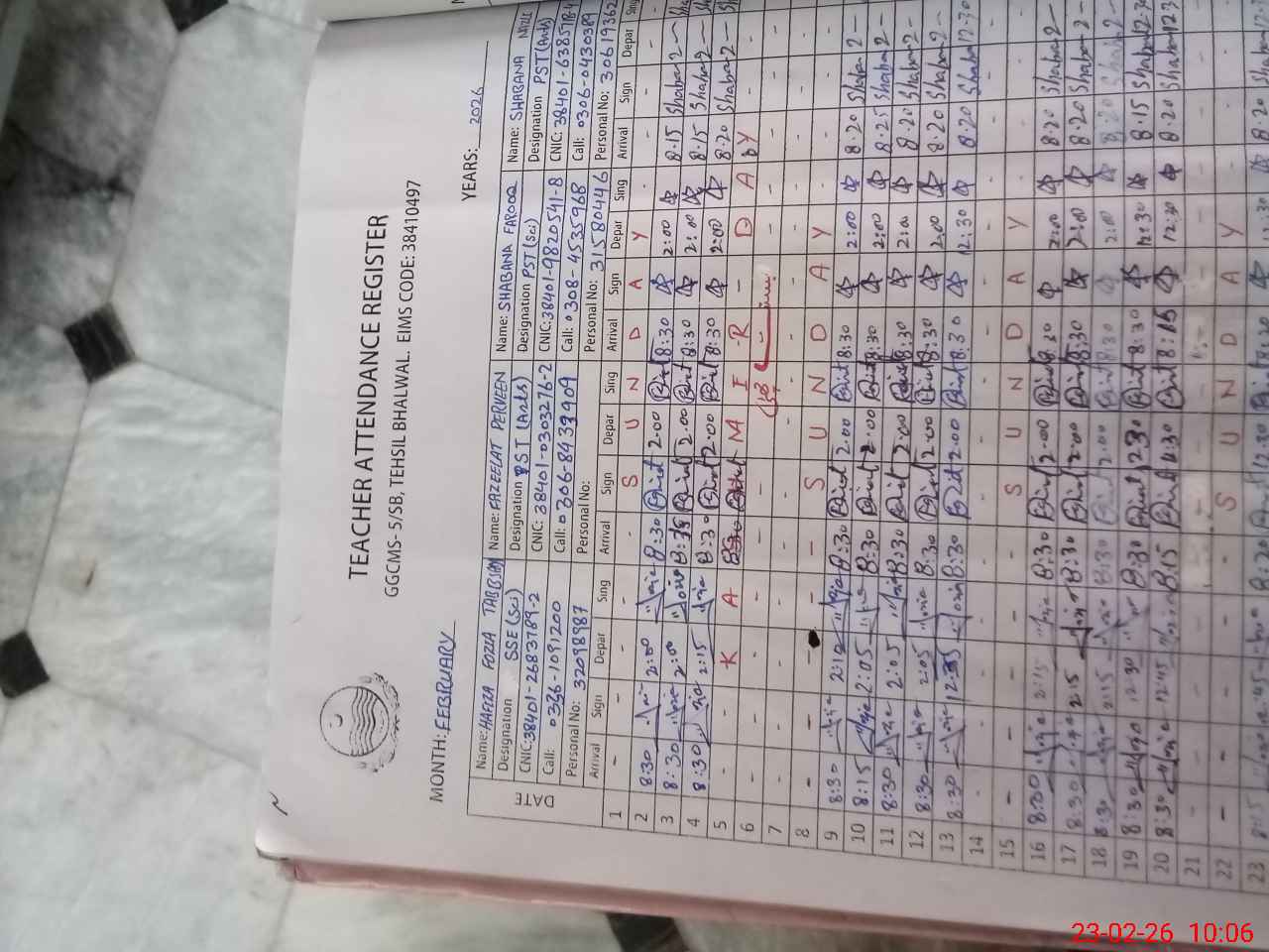 | Name: FO**** TA**** Designation: (School Headmaster's/Headmistress's) SSE (SCIENCE) Phone/Cell Number: 03**** |