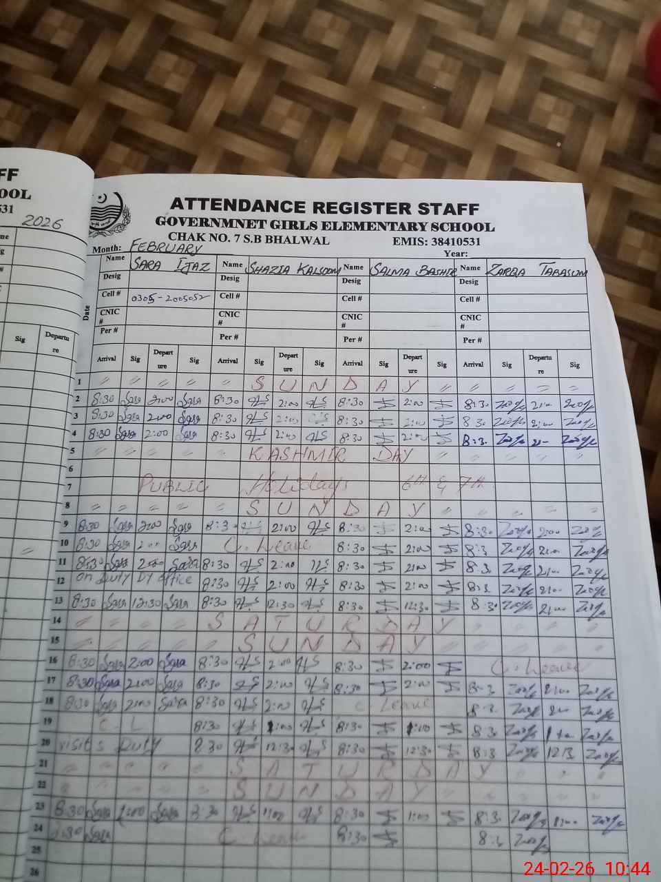 | Name: SA**** IJ**** Designation: (School Headmaster's/Headmistress's) HM Phone/Cell Number: 03**** |