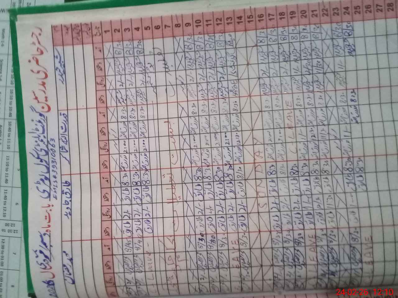 | CNIC | Full Name | Designation | R/C | Absence During Last Calender Month |