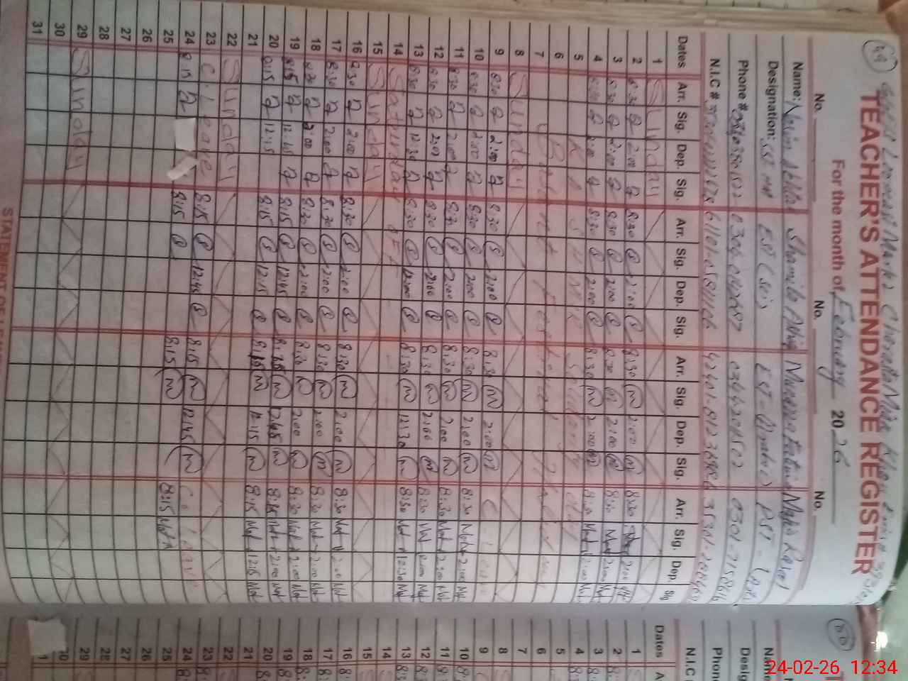 | Name: NA**** AK**** Designation: (School Headmaster's/Headmistress's) SST Phone/Cell Number: 03**** |