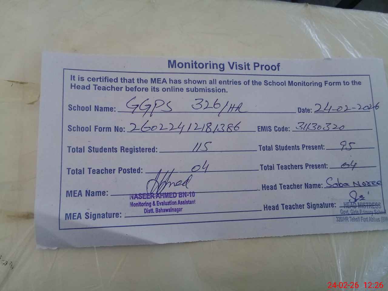| EMIS Code: 31130320 | Name of School: GGPS 326/HR | |||