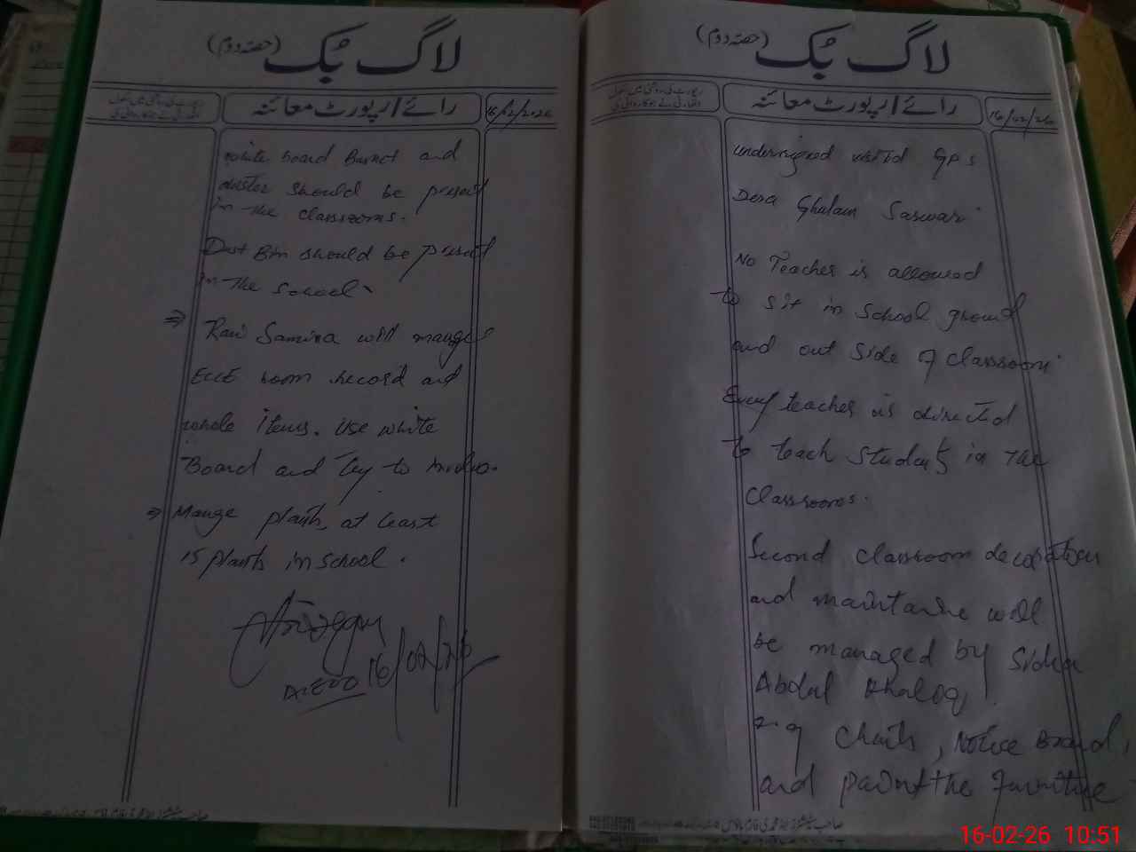 | Certified that this School was Inspected by the Undersigned MEA/DMO Today and the Information Stated Above is as Per Record. | |||||