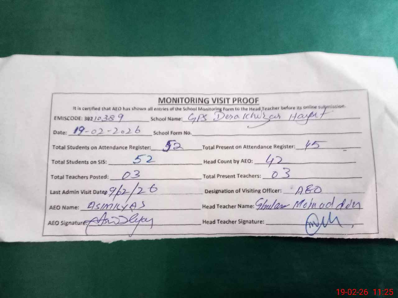 | EMIS Code: 38210389 | Name of School: GPS DERA KHIZAR HAYAT | |||