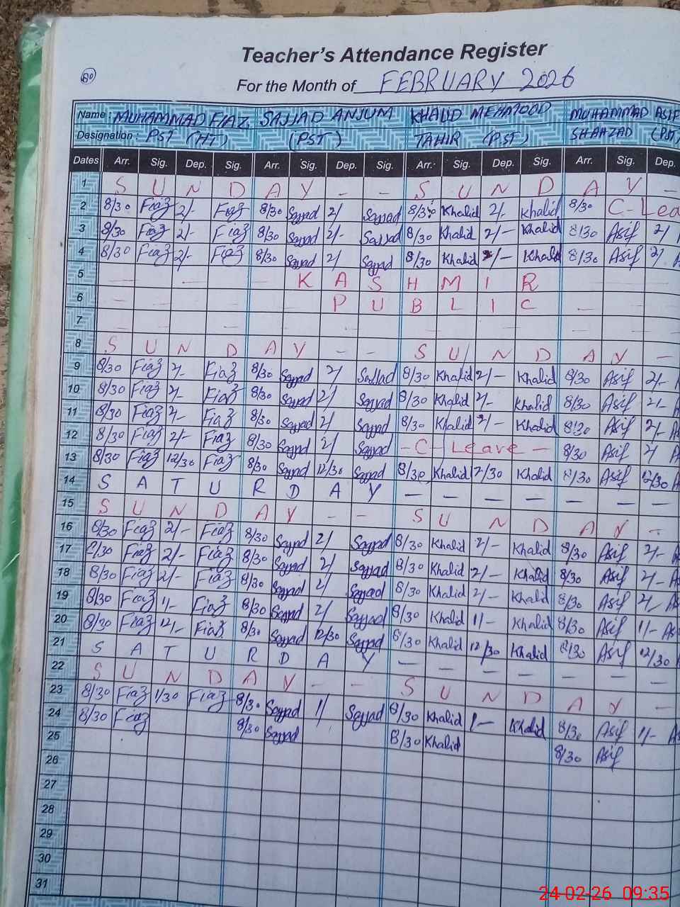 | Name: MU**** Fi**** Designation: (School Headmaster's/Headmistress's) PST Phone/Cell Number: 03**** |