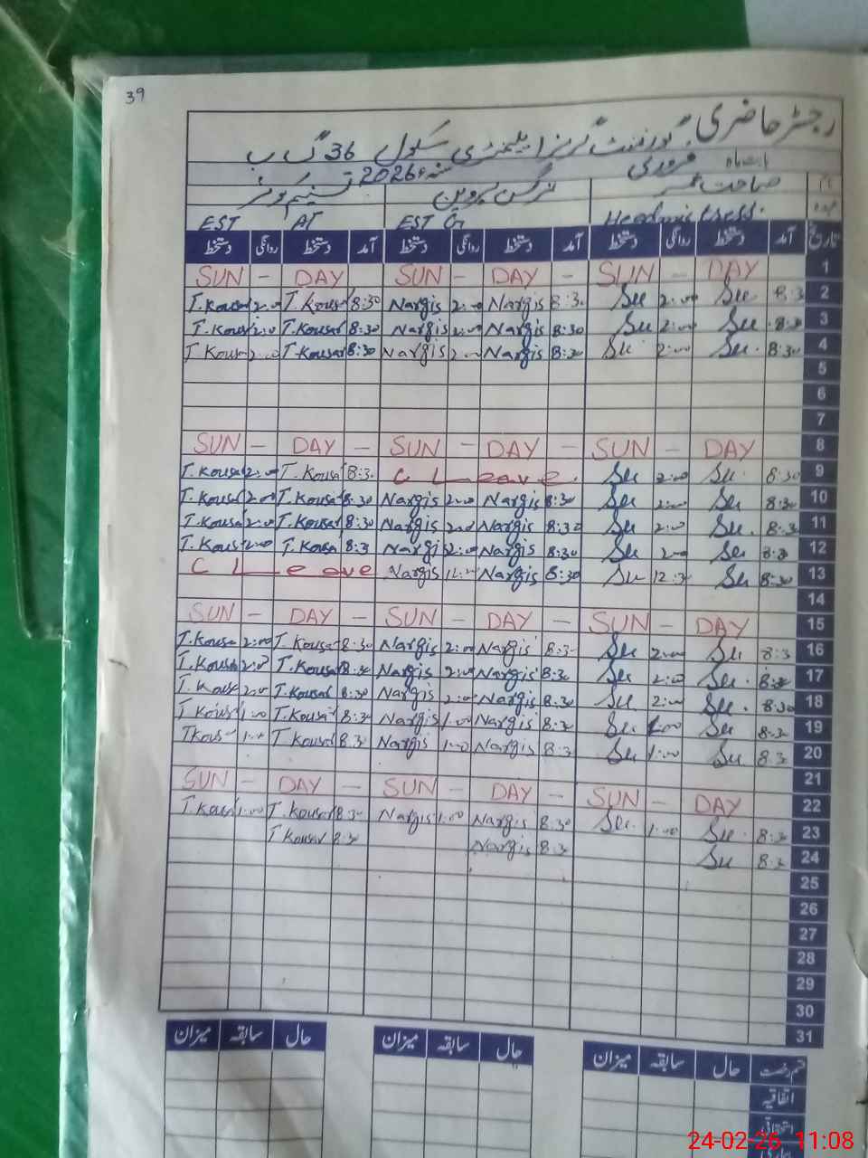 | CNIC | Full Name | Designation | R/C | Absence During Last Calender Month |