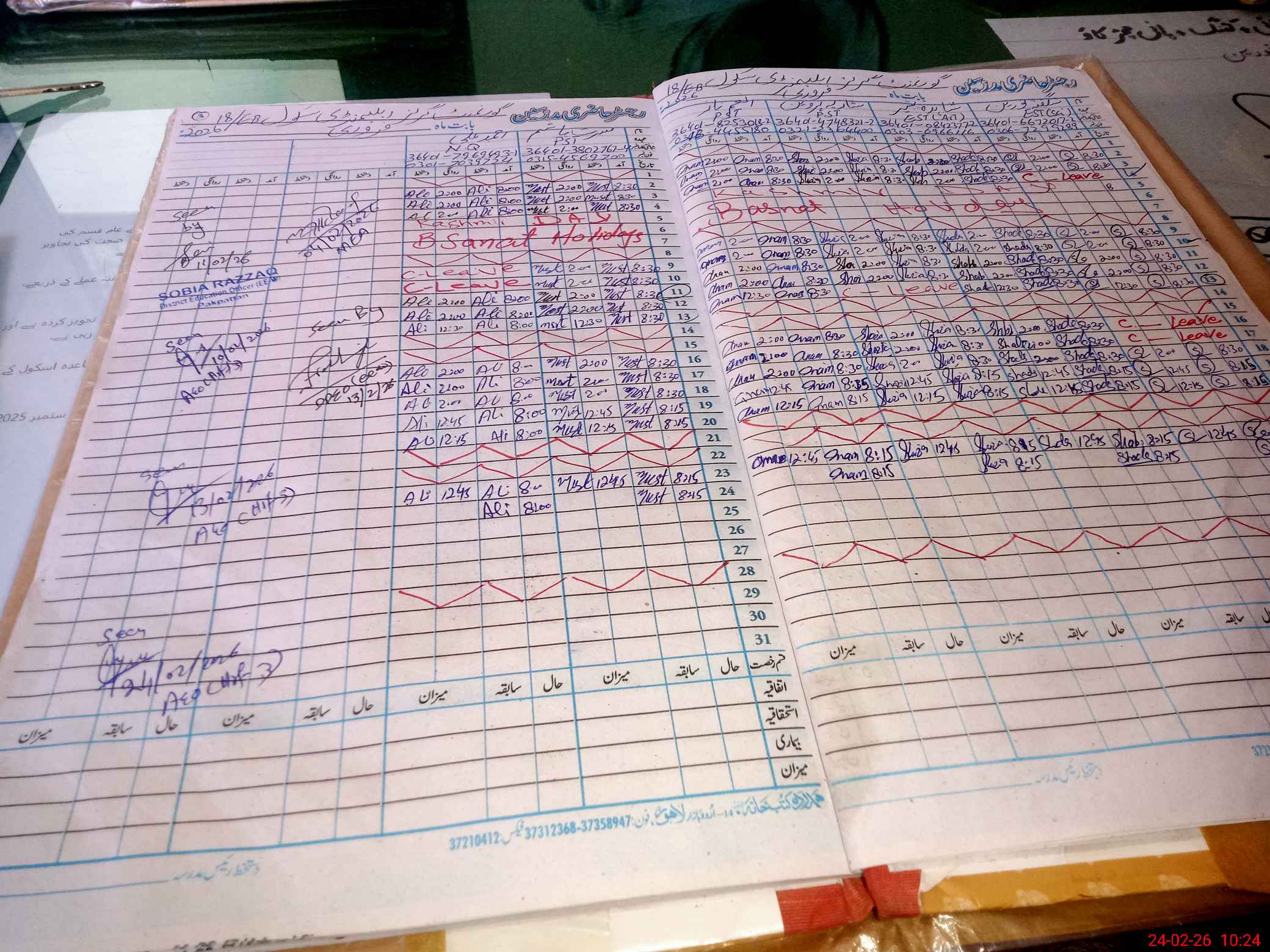 | Leave | Duty | Absent | Maternity | Medical | Ex- Pak |