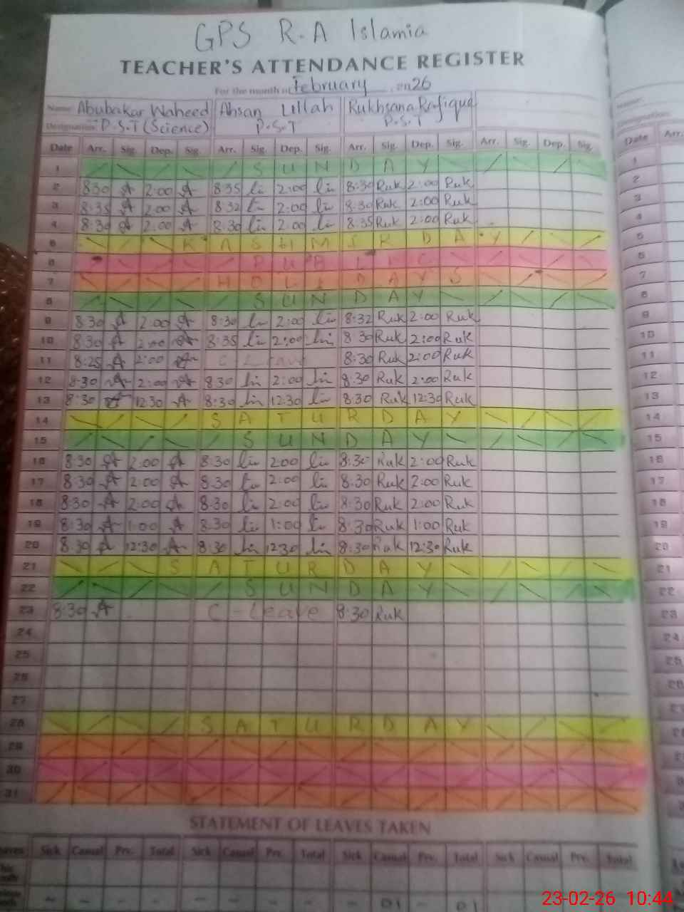 | 34**** | Ah**** Ul**** | PST Arts | Regular | 0 | 0 | 0 | 0 | 0 | 0 | 0 | 0 | 0 | Casual |