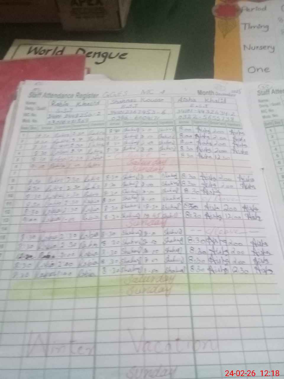 | CNIC | Full Name | Designation | R/C | Absence During Last Calender Month |