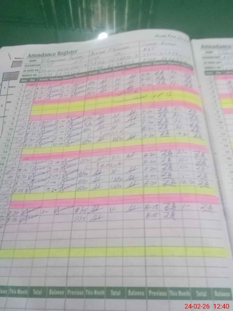 | CNIC | Full Name | Designation | R/C | Absence During Last Calender Month |