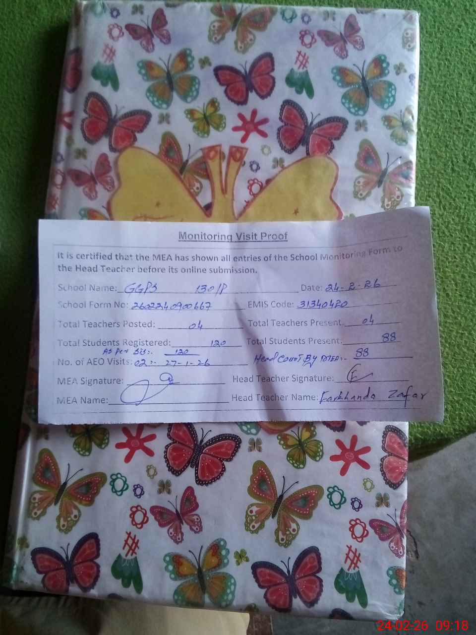 | Attendance Register | Head Teacher | MEA with School | Visit Proof |