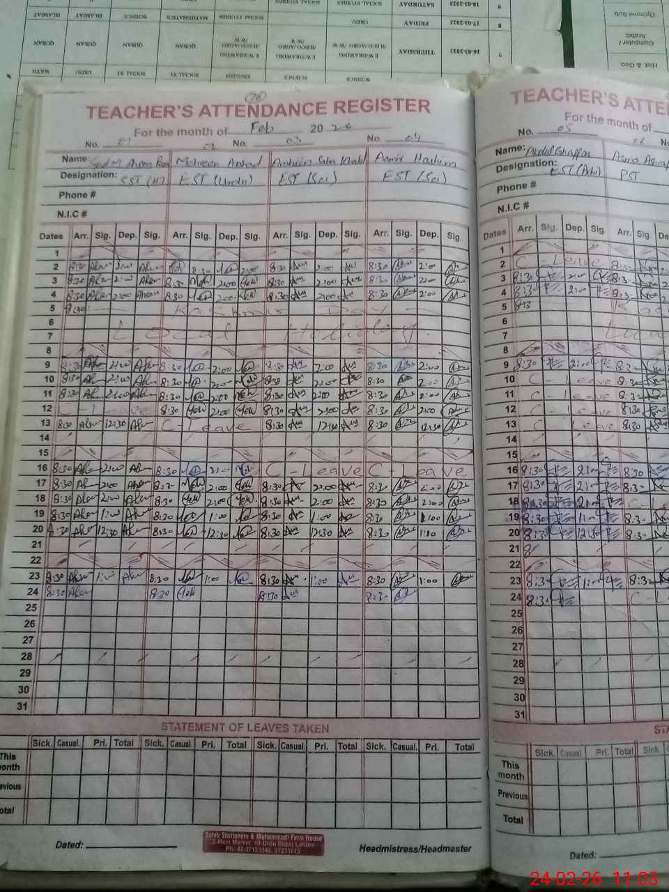 | Name: Sy**** MAh**** Ra**** Gi**** Designation: (School Headmaster's/Headmistress's) SST Phone/Cell Number: 03**** |