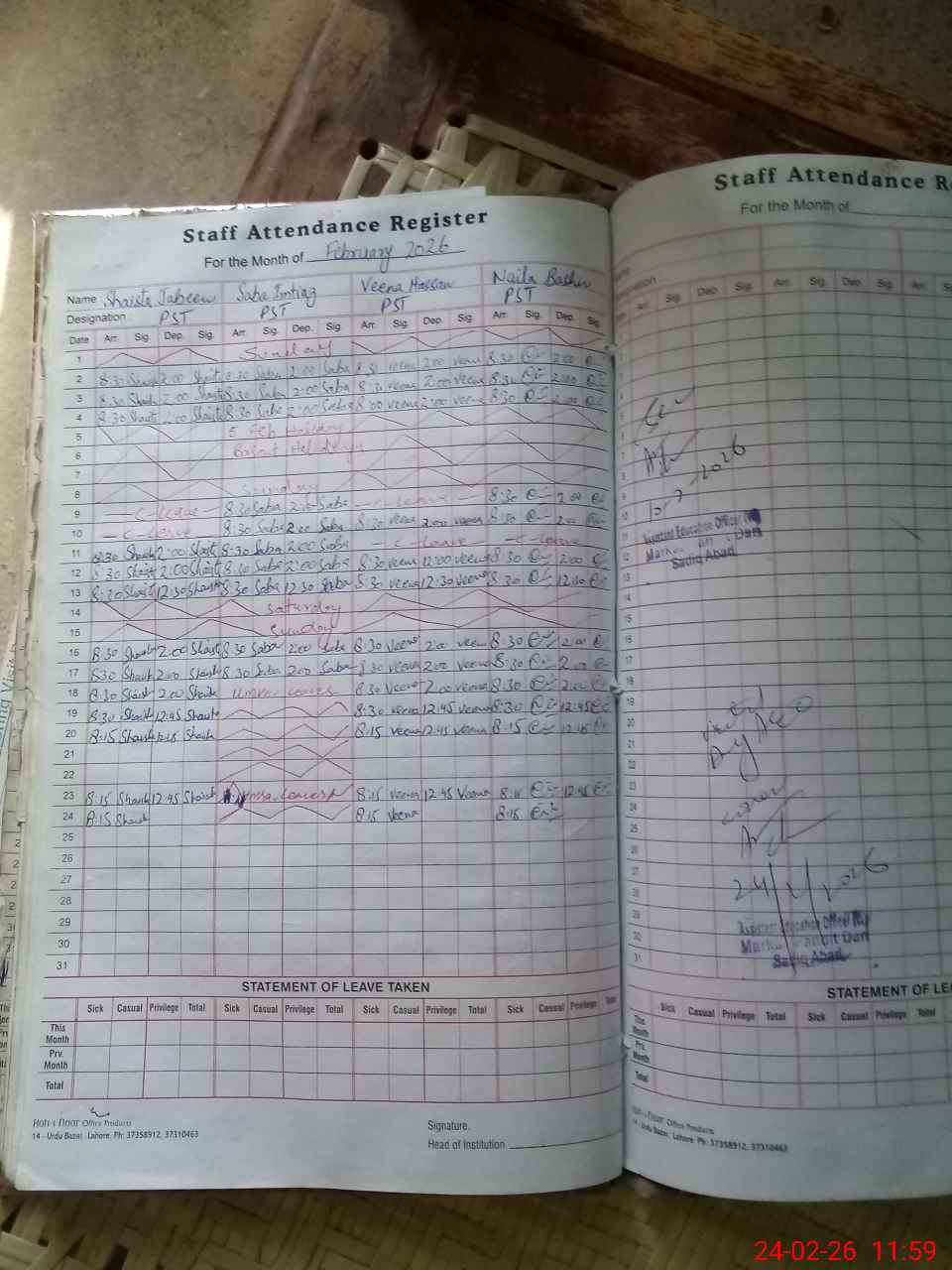 | Leave | Duty | Absent | Maternity | Medical | Ex- Pak |