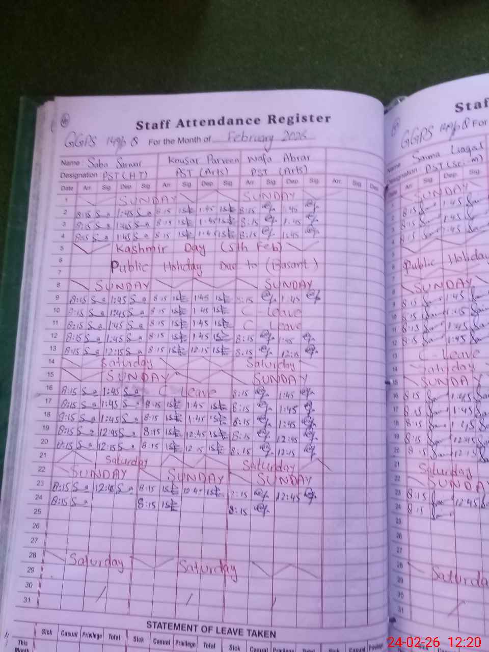 | Leave | Duty | Absent | Maternity | Medical | Ex- Pak |