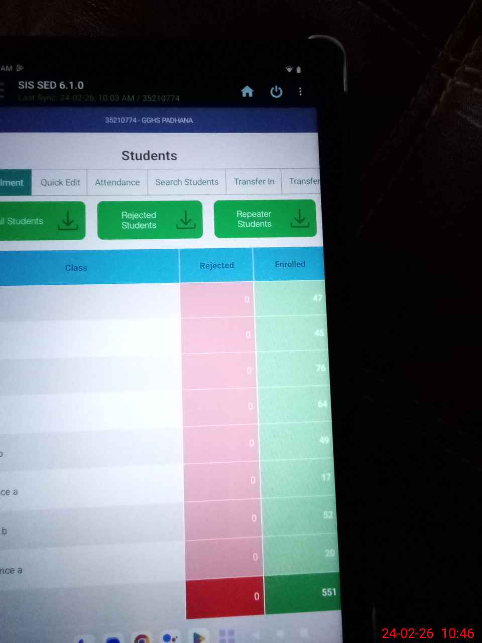 Student attendance is showing around 50% due to compliance to Covid-19 SOPs at schools