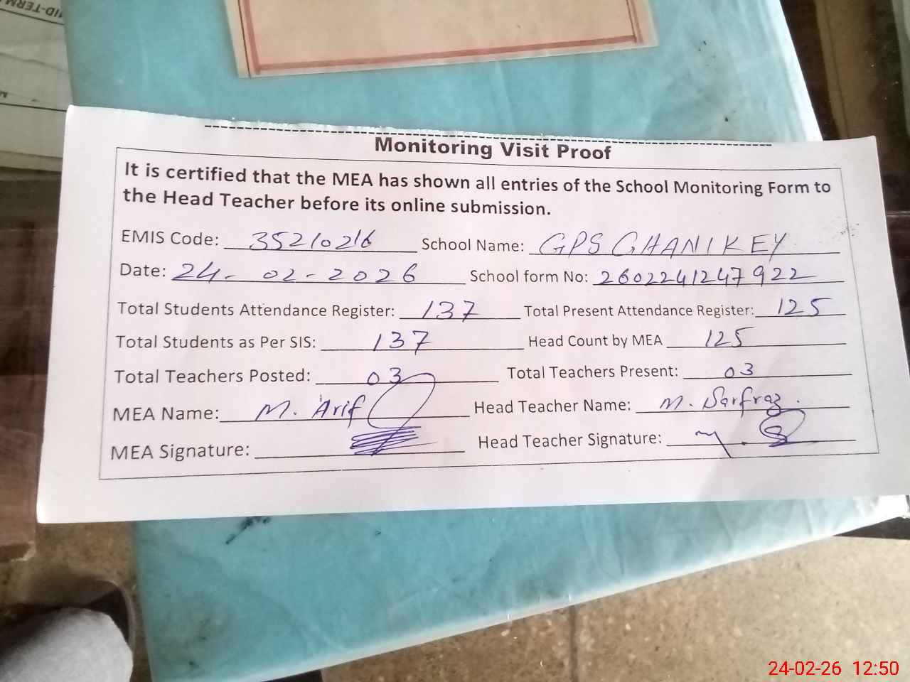 | EMIS Code: 35210216 | Name of School: GPS GHANIA KA CANTT-II | |||