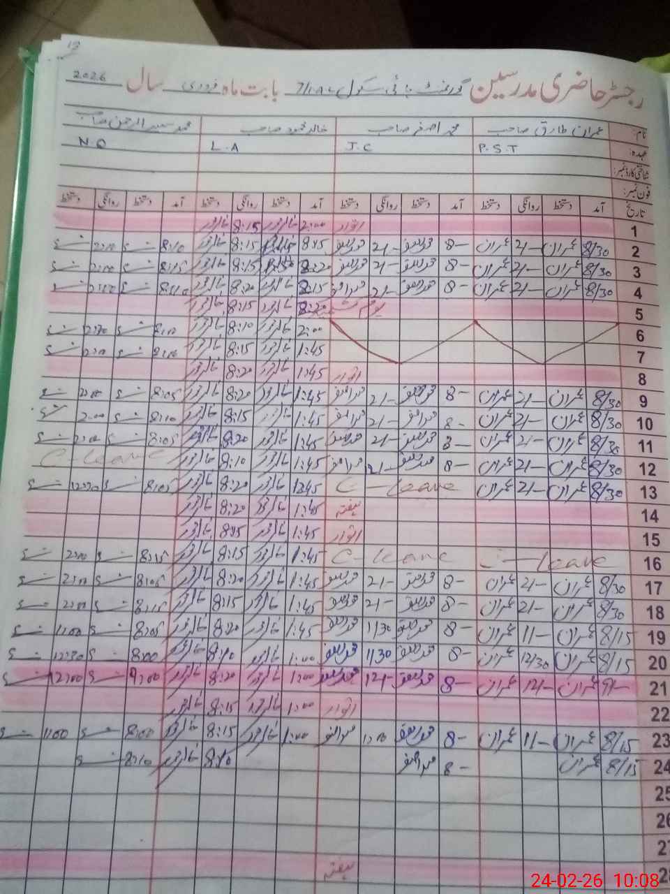 | CNIC | Full Name | Designation | R/C | Absence During Last Calender Month |