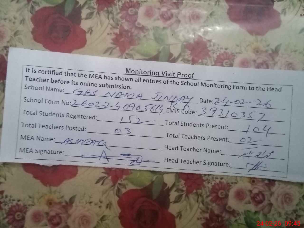 | EMIS Code: 39310357 | Name of School: GES NAMA JINDAY KA | |||
