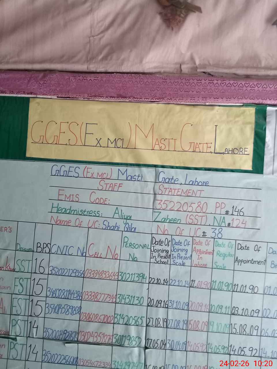 | EMIS Code: 35220580 | Name of School: GGES JUNIOR MODEL MASTI GATE (EX-MCL) | |||
