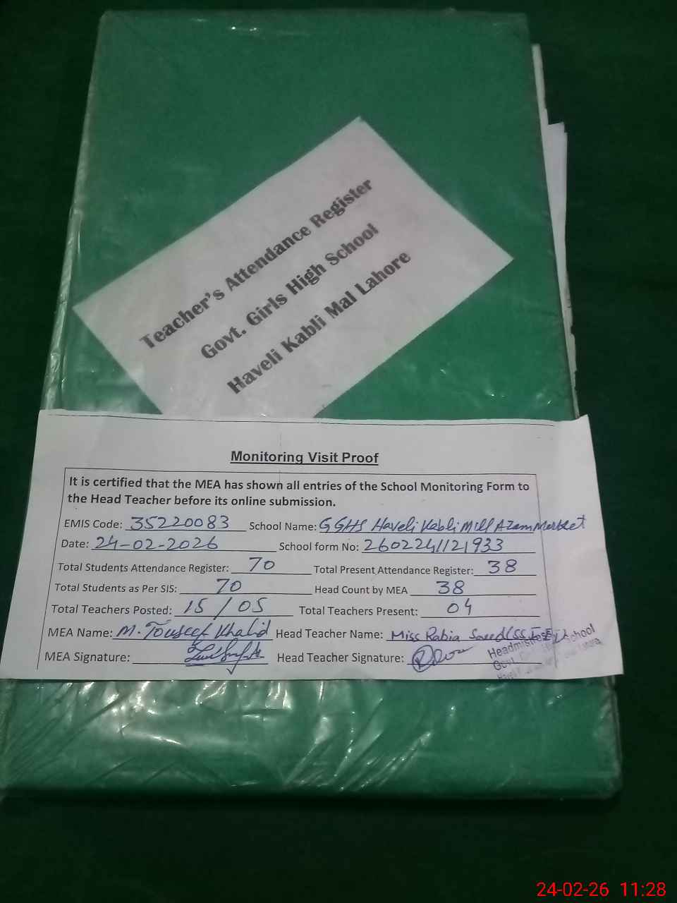 | EMIS Code: 35220083 | Name of School: GGHS HAVELI KABLI MILL AZAM CLOTH MARKET | |||