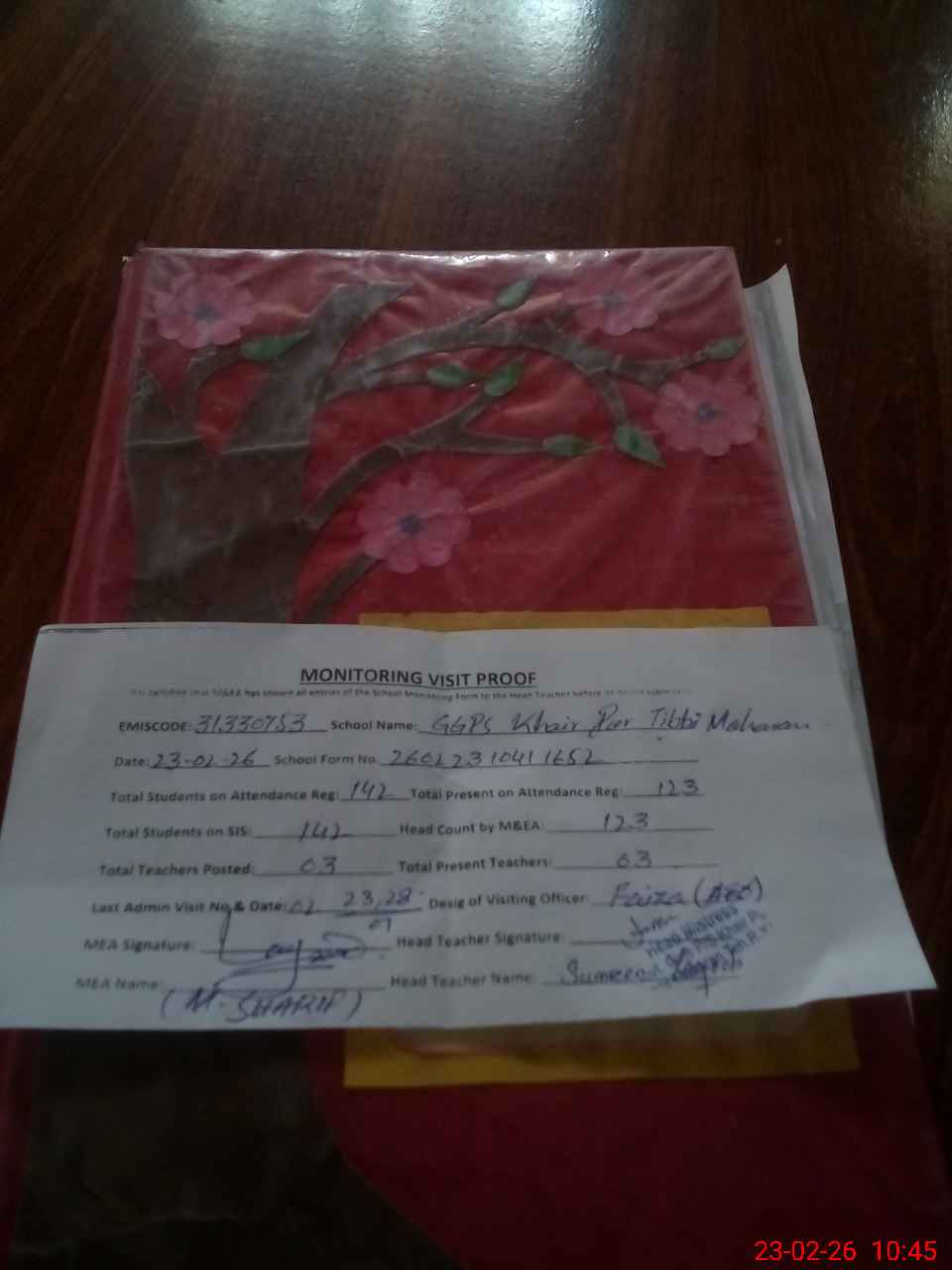 | EMIS Code: 31330753 | Name of School: GGPS KHAIR PUR TIBBI MEHARAN | |||