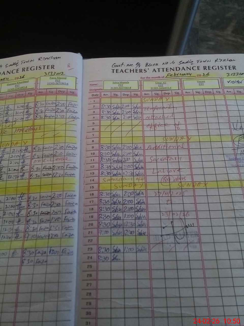 | CNIC | Full Name | Designation | R/C | Absence During Last Calender Month |