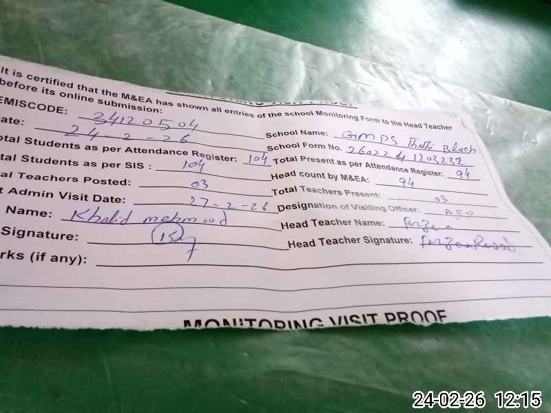 | Certified that this School was Inspected by the Undersigned MEA/DMO Today and the Information Stated Above is as Per Record. | |||||